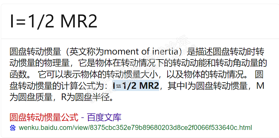你好学员,你是想问:转动惯量如何计算出来的,负载一经确定,转动惯量也就确定了,视频中得出的转动惯量结果就是根据实验demo实际情况计算得到的,如圆盘的转动惯量计算公式如下: