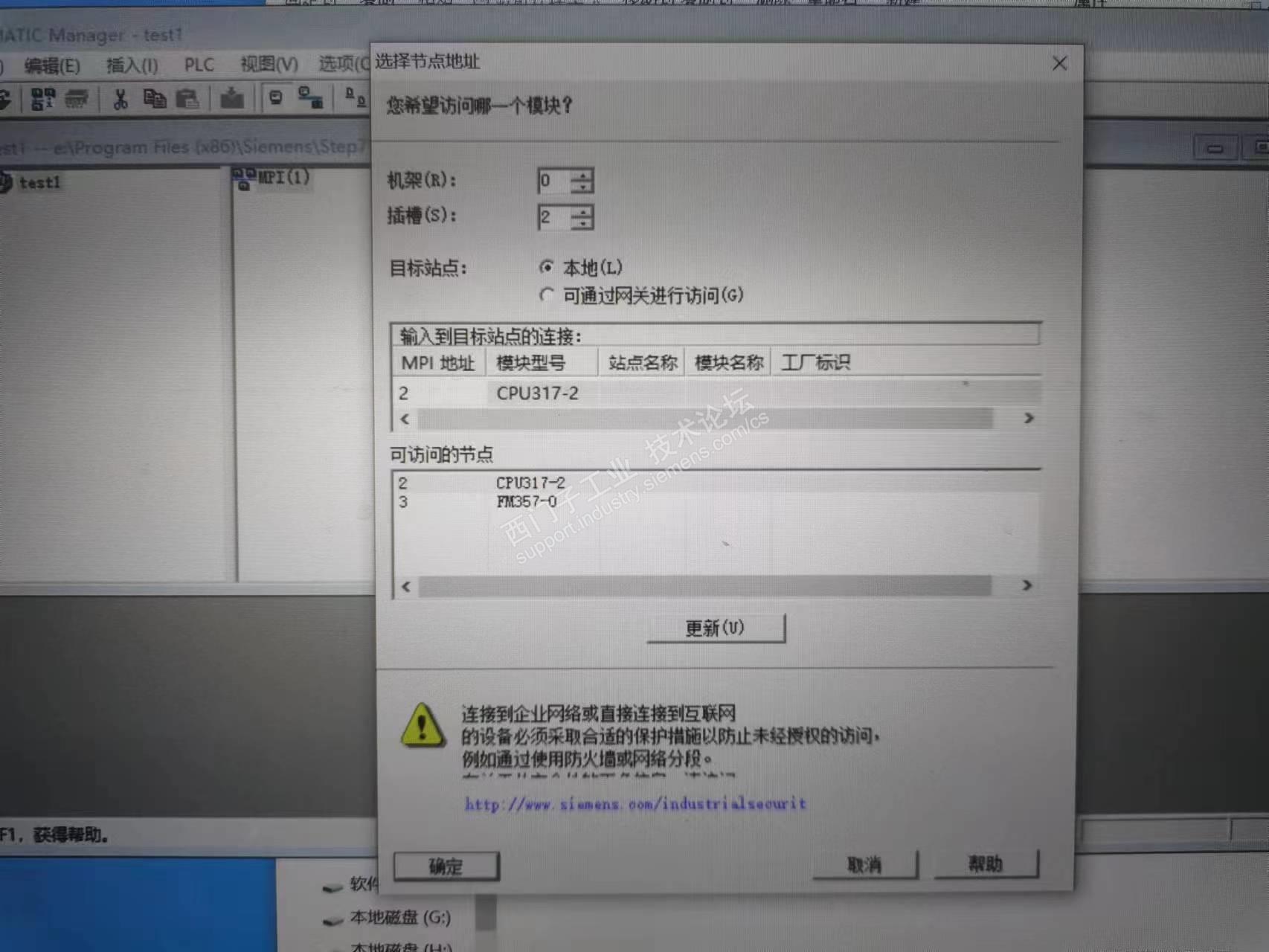 上面5.5版本是在虚拟xp中安装的,硬件检测好像有些问题。又在win10中安装了step7v5.6版本,执行上载程序可以识别出ncu,但是不能上载程序,报未知的在线cpu类型。于是连接一台运行正常的同样设备,发现提示一样,不知什么原因。
