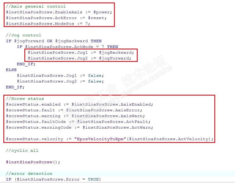 不过在这个程序内,没有这样去做。没有直接给FB块接口关联实参,而是通过往FB块对应的背景DB的接口区域赋值控制的,效果跟直接关联实参一样。下面就是程序中直接往FB的背景DB的接口变量内赋值的地方,有控制输入也有状态输出。