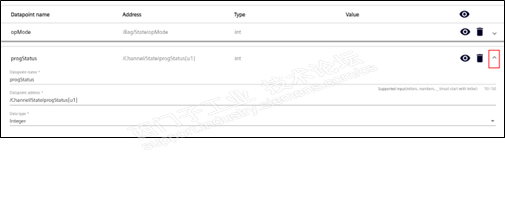 - 在变量集下建立变量。点“configure datapoints”后,输入变量的名称、地址和数据类型。