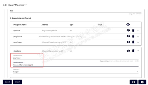 模拟报警2:将第一个变量集production下的stopCond变量地址改为/Channel/Parameter/rpa[8]。
