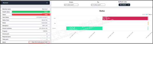 · 设备状态(Status):运行、待机、故障(Execute/ Idle/Held)。状态从何时开始(Start Status),持续了多长时间(Status Since)。