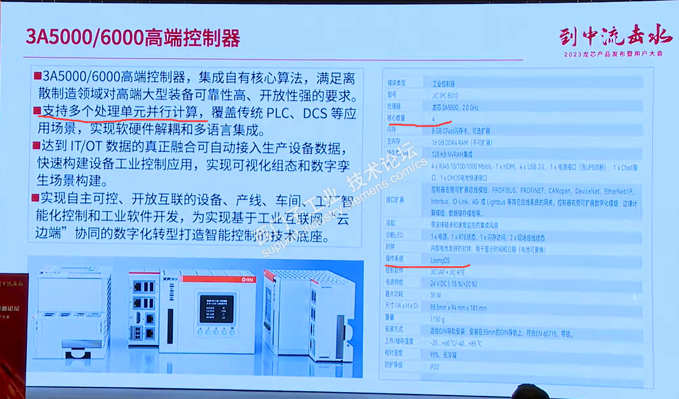 2023年11月28日的龙芯中科3A6000发布会上,龙芯副总裁提到了该款PLC对倍福的替代。