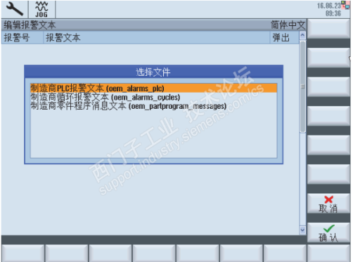 3) 选择“制造商 PLC 报警文本 (oem_alarms_plc)”,按下“确认”键;