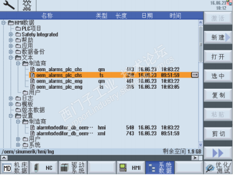 HMI 数据: HMI 数据\设置\制造商,适用于 OP+TCU+NCU 或 OP+PCU+NCU 配置结构 或 NCU: / SystemCF card/oem/sinumerik/hmi/cfg,适用于 OP+TCU+NCU 配置结构 或 PCU50.5: C:\ProgramData\Siemens\MotionControl\oem\sinumerik\hmi\cfg,适用于 OP+PCU+NCU 配置结构;