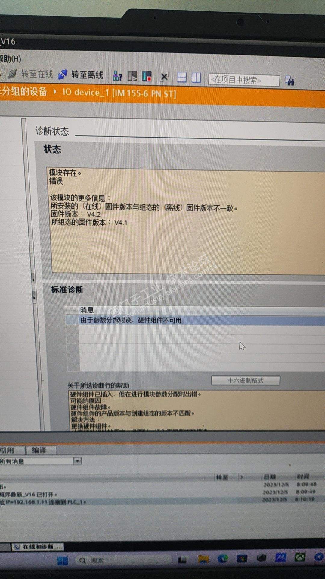 原来是v16 的程序升级成v17后发现et200sp的固件版本不能用了