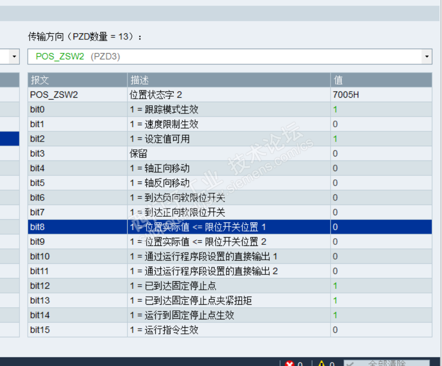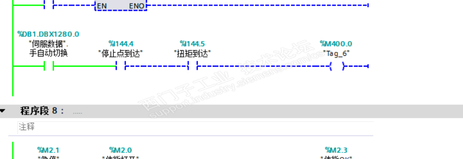 现场一共4台V90伺服 其中一台使用夹紧功能 FB284功能块使用模式6运行程序段 伺服调试软件显示已到达固定停止点,但是相应的位状态没有输出。监控其它的驱动都是有输出的。而且我之前测试的时候都是好的,不知道现在怎么突然就不行了。EPOS模式,111报文加750报文实现扭矩控制。现场线也是排查过的没有任何问题。还有各位前辈不吝赐教 谢谢