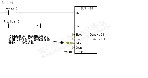 老师你好,说明书我都看了,就是没看懂寄存器地址,我现在就是频率可以写进去,然后读都可以,就是利用通讯不能控制启停,控制启停的寄存器地址怎么填写