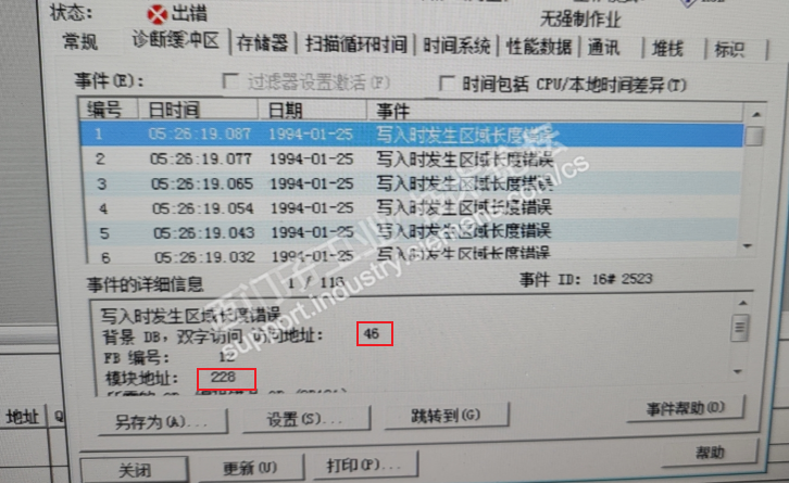 在诊断CPU时出现写入时发生区域长度错误,跟这个接口有关系么?