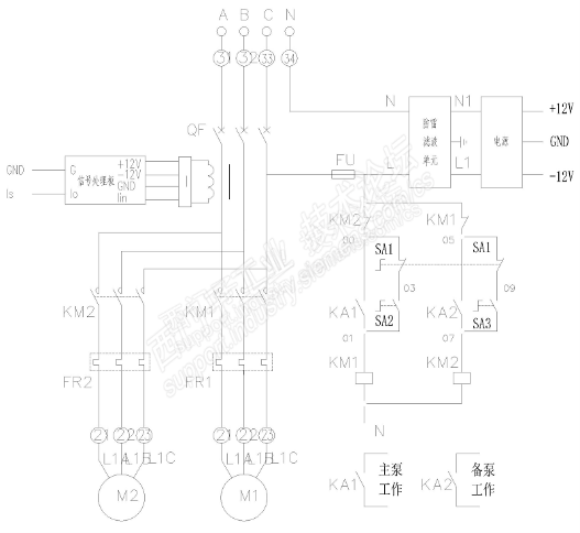 【3】通过热继电器触点的输入,实现泵的过载故障报警及显示。通过对泵的运行电流与启动逻辑的判断,实现油泵电机空载的检测及报警功能。