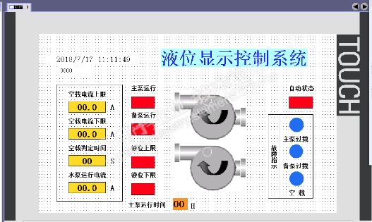 【5】通过触摸屏,显示水泵的工作状态、实际运行电流及工作时间,显示液位的当前状态。