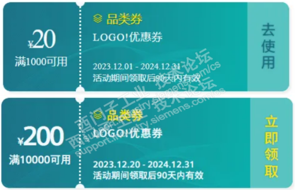 点击此处,即可领取西门子官方工业商城LOGO!专属优惠券!