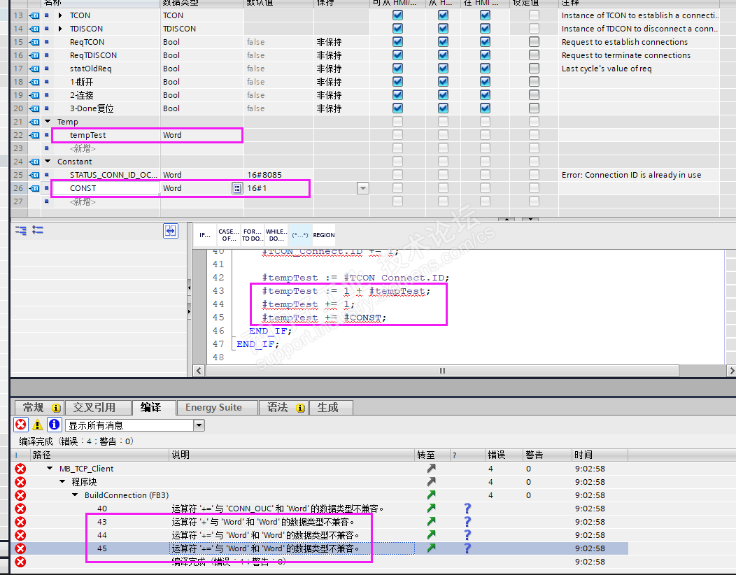 @yming ,请看下面,原来我这个版本,是WORD类型的不支持数学运算啊;我拉了下梯形图,INC指令和ADD指令里,都不允许出现WORD类型的值,比较奇怪啊;