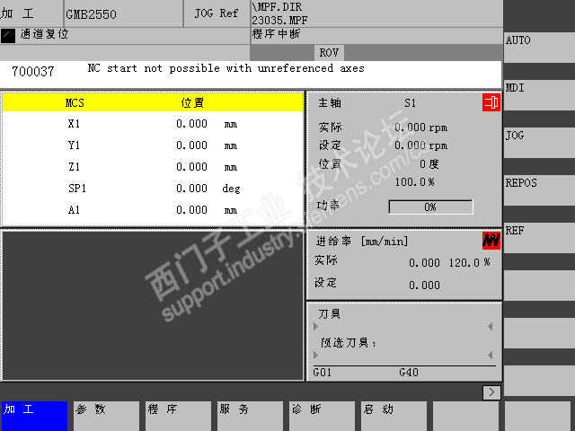 1、设备型号:应该是840d,设备运行的界面如下图1。