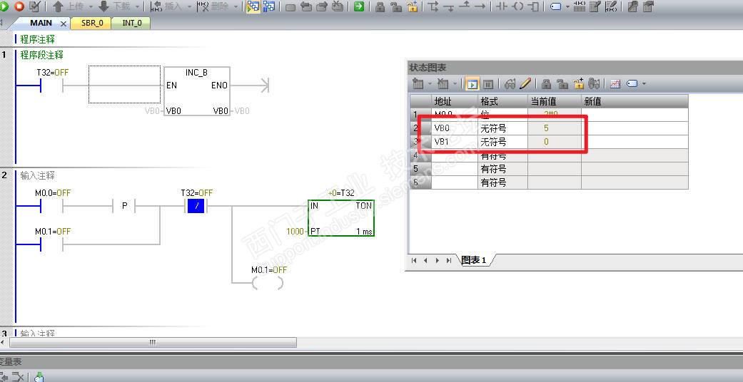 把T33改为T32,测试结果仍然使VB1没有加1,图示: