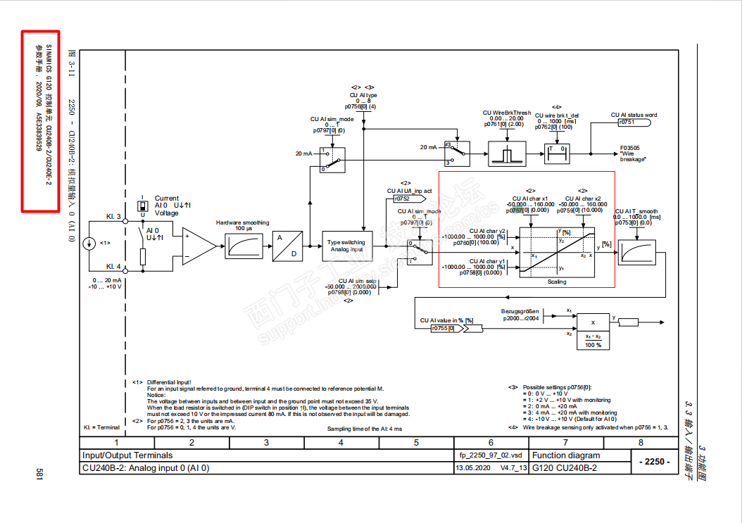 p0757[0...1] CU 模拟量输入特性曲线值 x1 / CU AI 特性曲线 x1,
