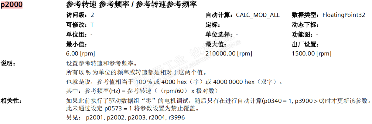 P0311电机额定转速已经按电机铭牌设置了,P1080设置最小速度10HZ,P1082设置最大速度50HZ,调试前没注意到P2000这个参数