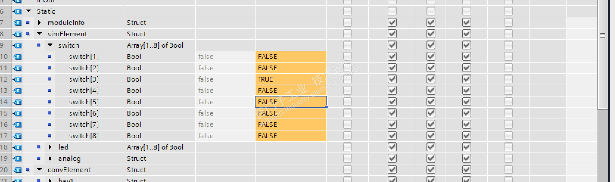 并且点击HMI相关变量后标准块背景DB已经变化,但没有反馈到I4.0-I4.7相关变量中