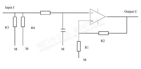 该方案的原理很简单:将分流器串入电流回路中,利用电压等于电流乘以电阻的原理,得到分流器上的电压小信号(mV级),由于分流器就是一个电阻,电感量、 电容量极小,可忽略不计,因此分流器上的电压信号正比于电表流过的电流信号,同时没有相移,没有失真也不会饱和。