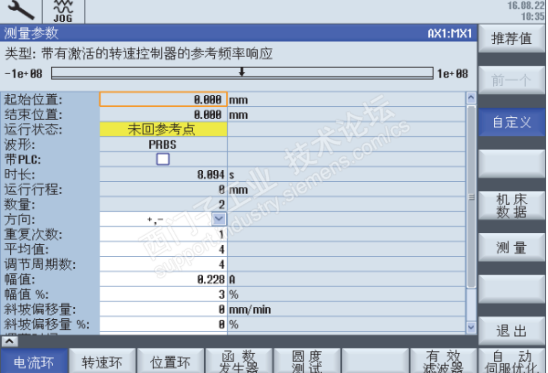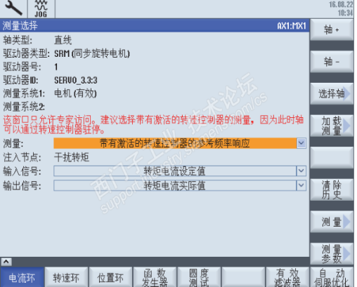 当所使用的电机为第三方电机或直驱(1FN/1FW/1FE)电机时,在正常使用前,必须测量电流环调 节回路。