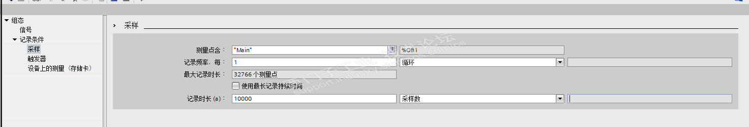 2.在采样中设置采样记录时长,根据现场条件设置即可