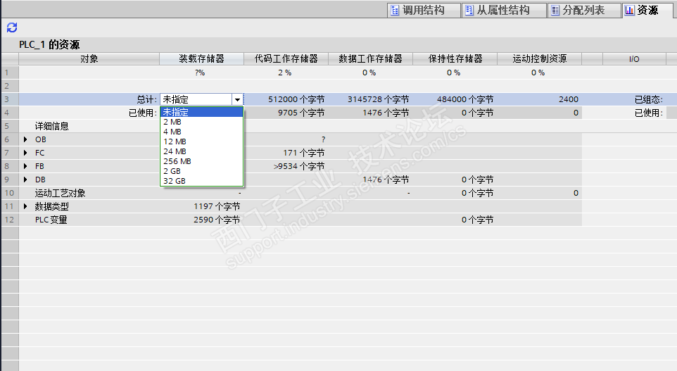 因为现在系统认为没有装载存储器(未指定),已使用的存储器已超出范围,所以会显示红色。你可以鼠标点一下未指定,然后选择准备使用的装载存储器的大小,只要总计的大于已使用的,就不会显示红色了。