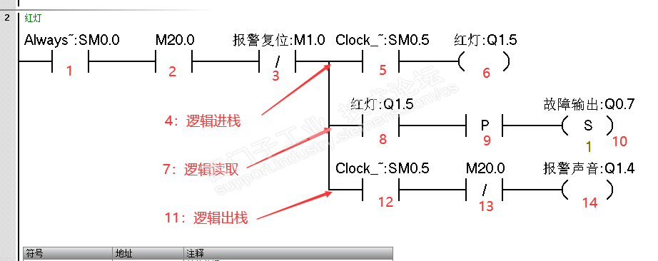 如果将【分支行】中的 第一行【Q1.5线圈输出行】与 第二行【Q1.5的 上升沿 置位Q0.7】调换后, 在Q1.5输出高电平后的下一个周期,才会置位Q0.7。