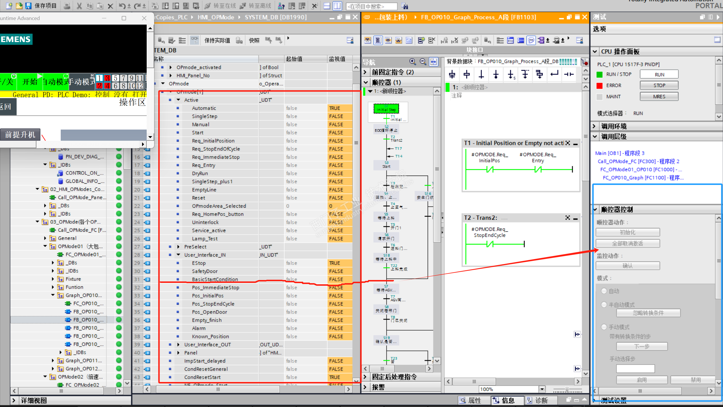 我是去找OPMODE里哪个变量变化了,然后找对应程序的引脚写入地址,这个测试界面变灰的原因和一个变量有关