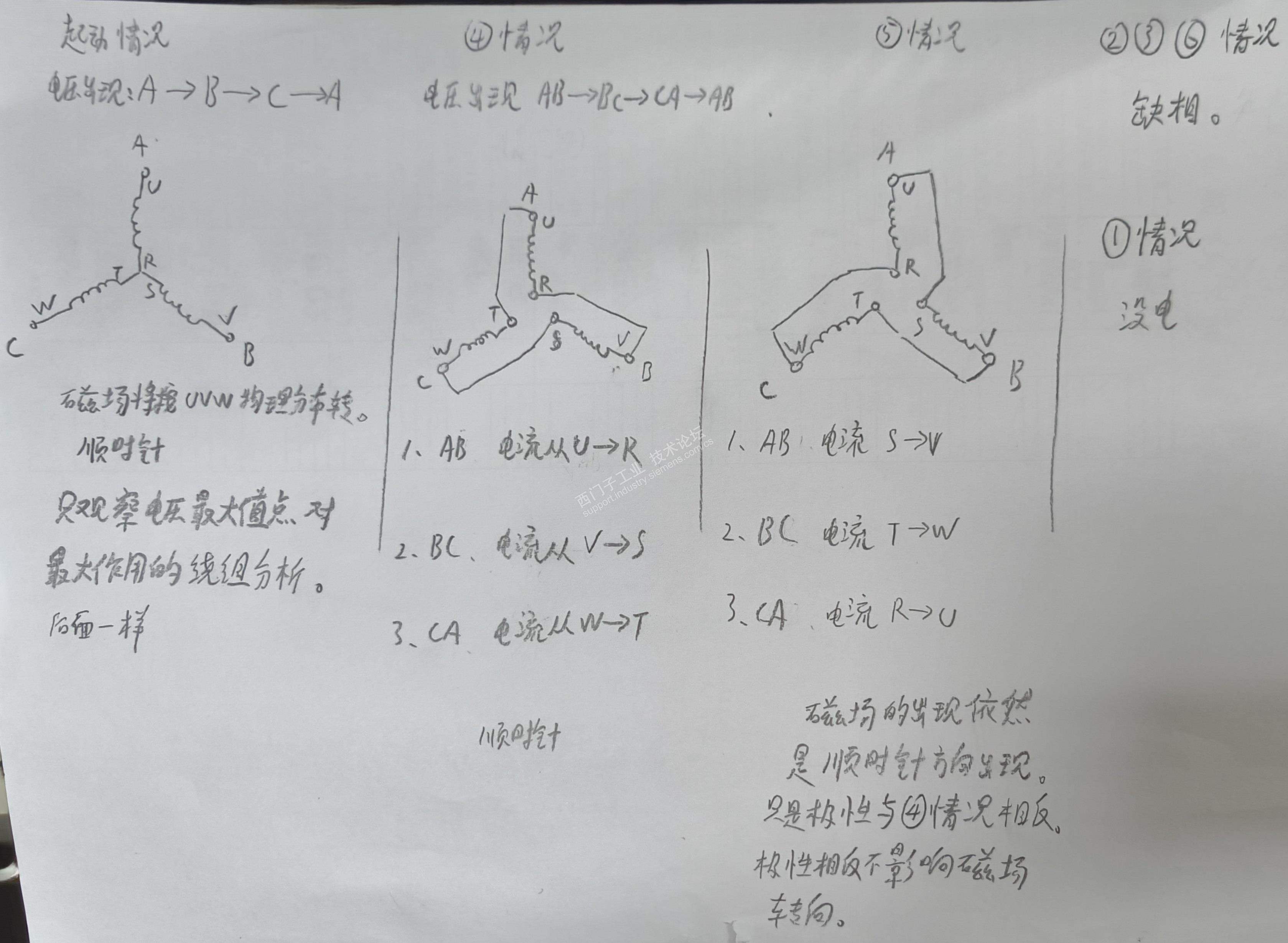 6种接法中,确实是有两种情况是可以正常使用的。因为这两种接法我都在同一台机上接过线,试过了。而并不存在启动后会反转的情况。这种明知的状态我就没有做破坏性试验了