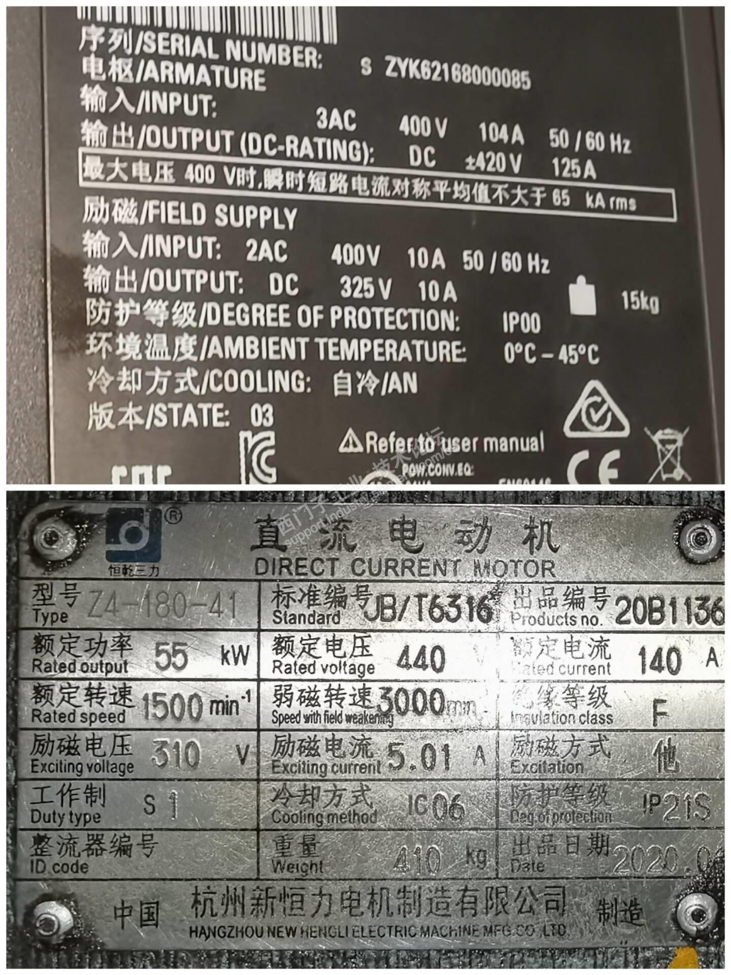 80DCM型号:6RA8031-6DV62-0AA0-Z,励磁输出325V/10A,电枢输出125A。