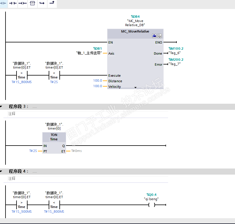 我想要在传送带上的膜具到气泵下面时候,气缸电磁阀通电300ms,气泵往下压然后收回,保证每次有膜具到下方就会通电气泵下压,膜具大概是一秒多样子向左边移动一个,并且每次急停,或者直接关闭plc重启都不会出问题