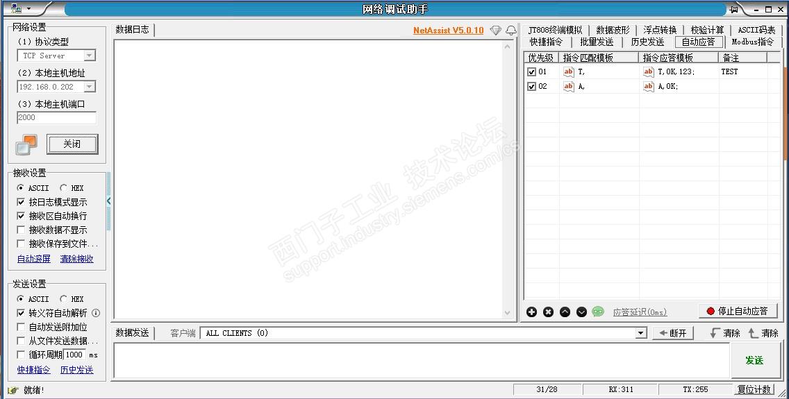 NetAssist已经运行了,我再用NetAssist新建一个client 是可以和Server通讯的,就是用PLCSIM无法和NetAssist server通讯。