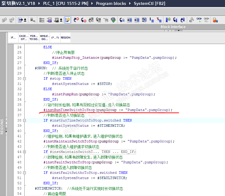 调用这个instRunTimeSwitchToStop(reset := true,pumpGroup:"PumpData".pumpGroup)的目的是为了把