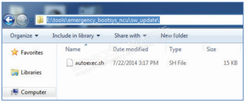 1) 拷贝 CD\tools\emergency_bootsys_ncu\sw_update\autoexec.sh 文件到 U 盘;