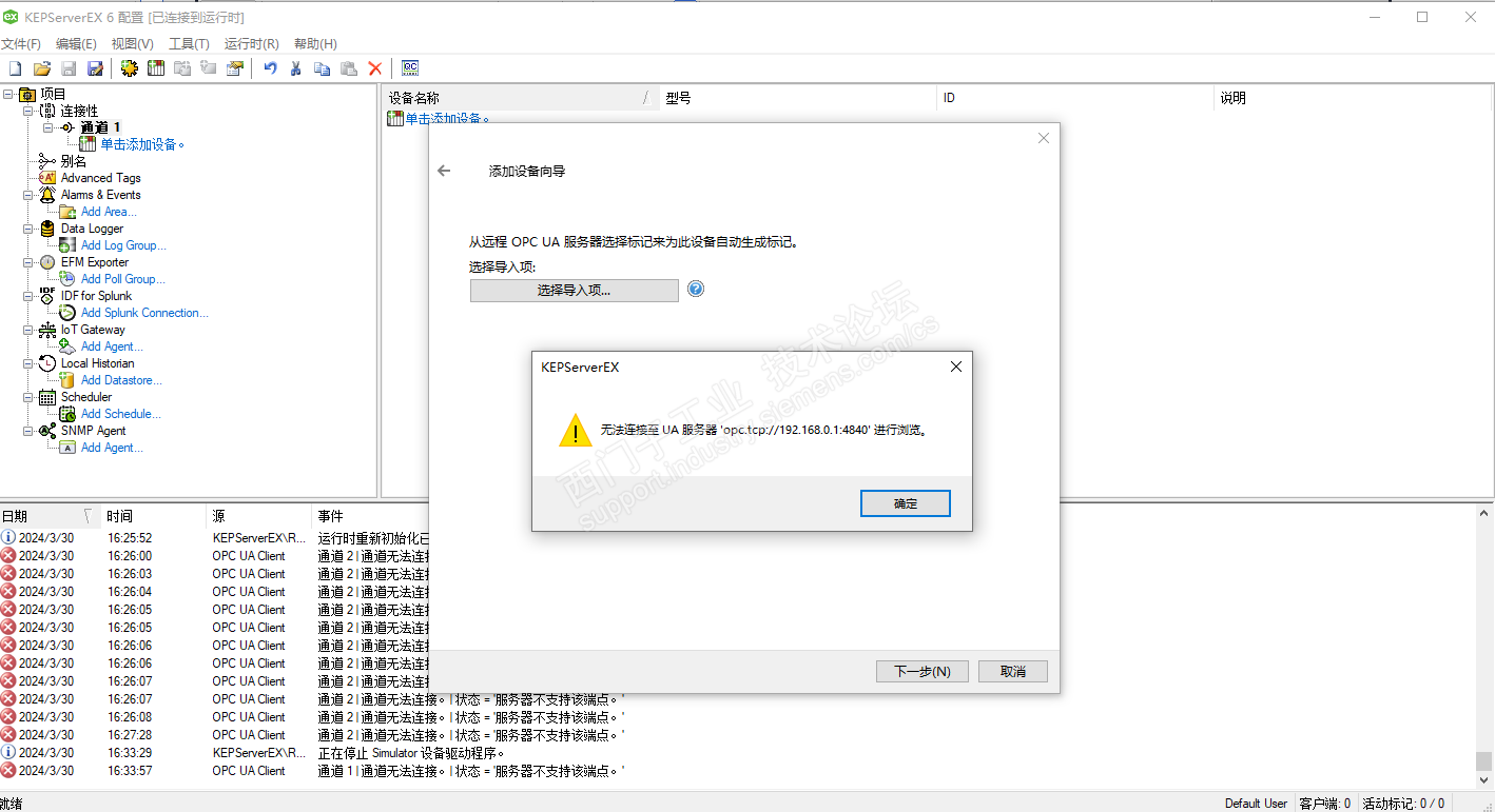 使用UaExpert能打通,但是在kepserver怎么都连接不上,有谁碰到过这个问题吗?请教一下!