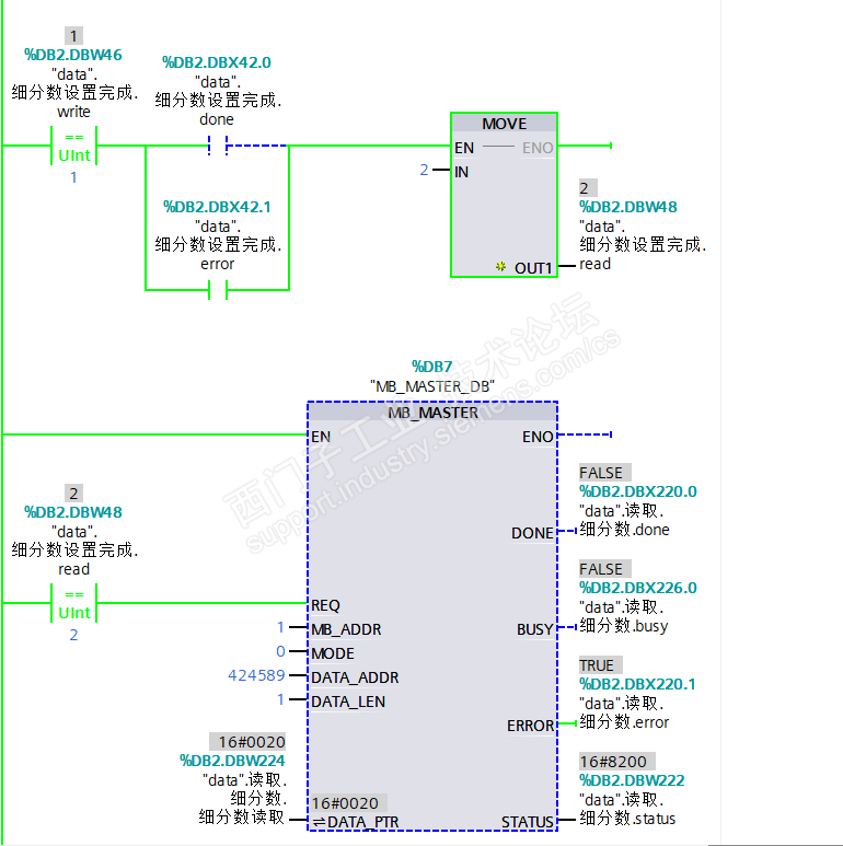 1200 modbus通讯控制步进电机,一直报错800 请大佬们看看错误出在哪里?