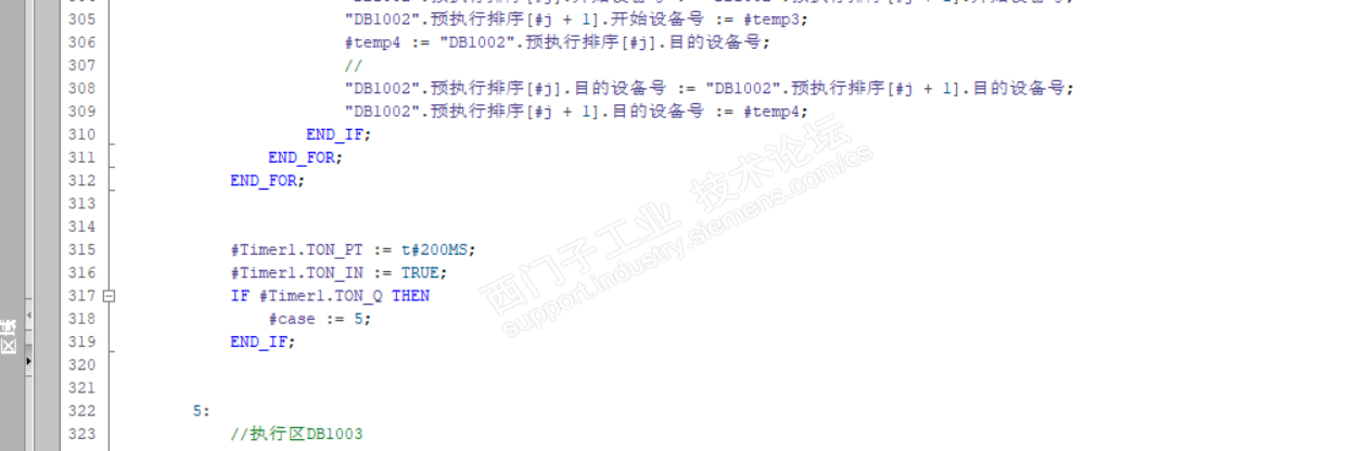 如图,有个问题。我没想明白,在这个块里面初始化时,TIME.TON_IN=FLASE , 下面第316行又变为true,但是在周期扫描时,没有到达200ms时,程序就继续执行下一段了,全部执行完又重新开始扫描了,但是第23行又变为flase了,我的疑问是,扫描到316行时,变为true,后面是不是又重新计时了啊,是不是永远都到达不了200ms啊?