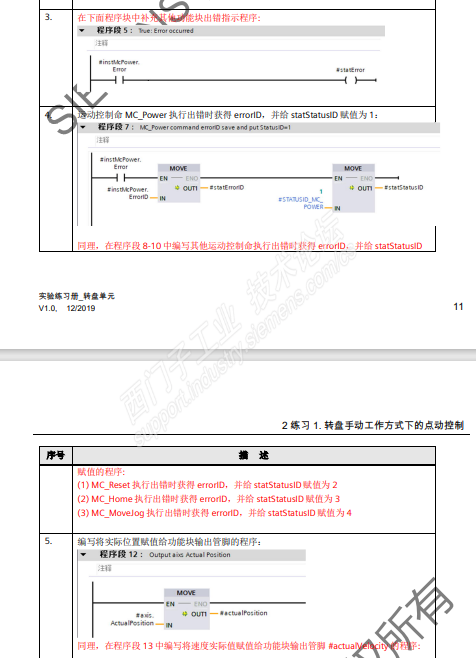 图片来源《转盘单元的功能实验指导》,请根据我们提供的实验指导书补充程序内容,另结尾为_Answer的项目中有完整的程序可以参考,实验要求是补全的其他功能块的错误程序的