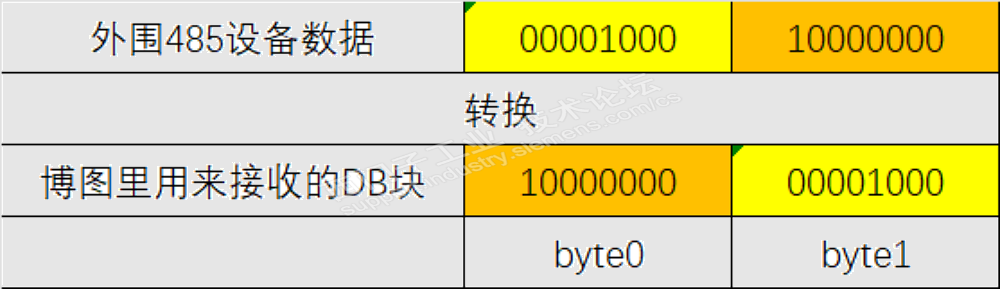 如下图,外围485设备里的数据与博图DB块的对应关系,这样才是对的吗?