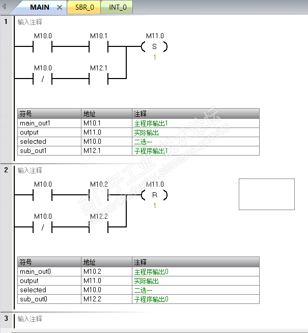 中断输出的值不立即输出,而是保存到m点,主程序的输出保存到另外一个m点,然后用选择位控制把谁的输出去是不是就可以了呢?