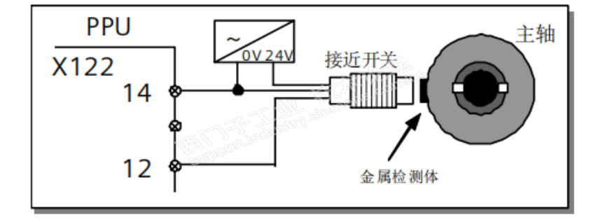 BERO 信号接到 PPU 的 X 122 的 12 针脚,14 针脚接接近开关的信号地,8 针脚需要接+24V。