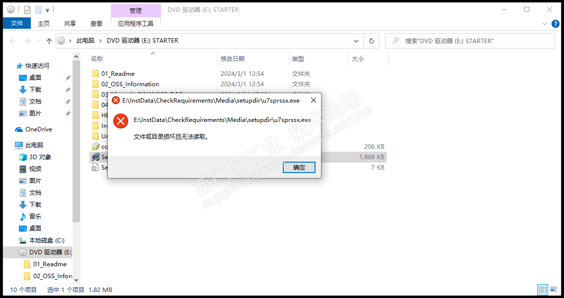 无论是在IOS文件中直接运行安装文件,还是解压缩以后再运行安装文件都会提示这个错误