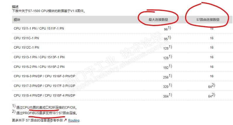 以1513-1PN为例,最大连接数量128台S7设备,其中CPU本身可以连接88台S7设备(这其中有78台是S7设备,10台是比如触摸屏,上位机等特殊设备)。另外如果项目数量超过88台,则需要增加CP/CM模块,CP/CM模块连接S7的数量可以有很多台,如果CPU本身只连接10台S7设备,CP/CM 的连接数量可以达到118台(理论值)。