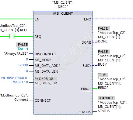 ModbusTCP 通讯 PLC做为客户端,上位机做为服务器,用MB_CLIENT指令去读数据,状态 7005和 80C3循环显示这是什么情况呢,帮助说明没有80C3 这是啥意思呢