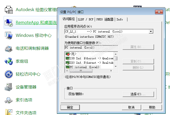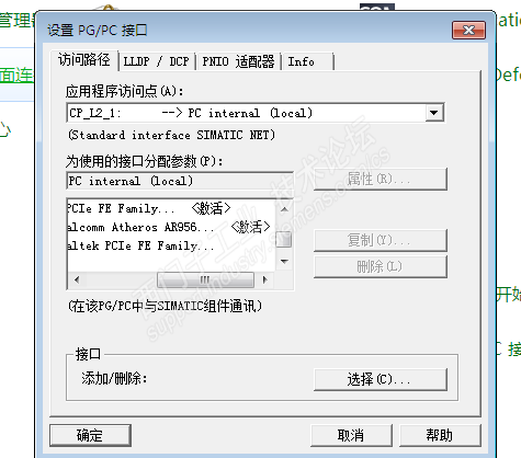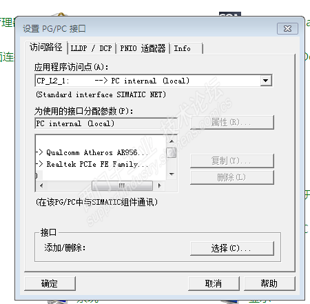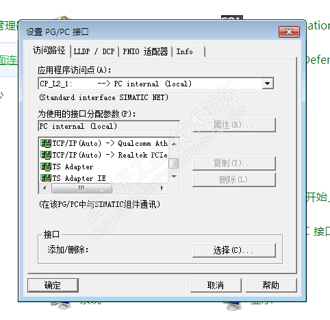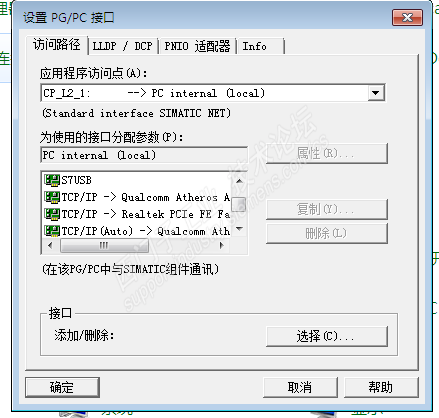 官方制定用PG/PC接口里面的TCPIP.1选项,不可以选TCPIP.AUTO.1选项,而我电脑控制面板的PG/PC接口里面根本没有这个选项