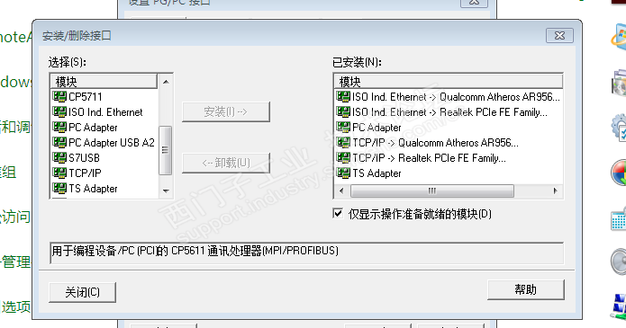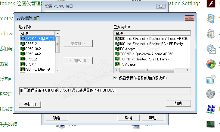 官方客服:建议用正版Win7加最新版更新补丁来运行WinCC V4 SP2。目前系统已经做好,并更新好了。但是控制面板的PG/CG接口里面选项的后缀依然没有后缀是TCPIP的选项。所以,我怀疑WinCC V4 SP2的驱动包根本就不支持Win7 32位 的操作系统,也就是官方的安装说明是没有经过实际验证而发布的。因为同一个安装软件在Win10 X64和Win7 X86上面的PG/PC接口里面的选项差异是天壤之别。