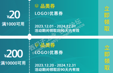 点击此处,即可领取西门子官方工业商城LOGO!专属优惠券!