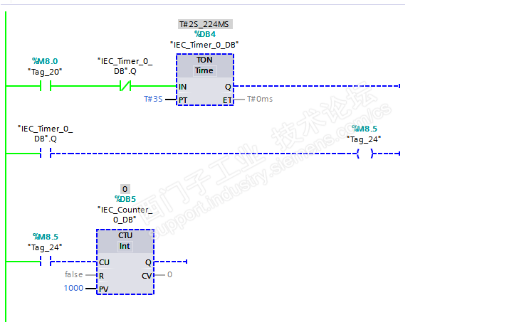 西门子的不要用本身的Q点,加个输出变量,定时器内部机制不一样