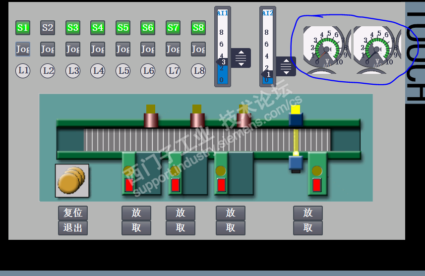 仿真运行的画面中指针表显示还是有问题,皮带机的显示问题以解决
