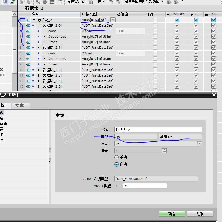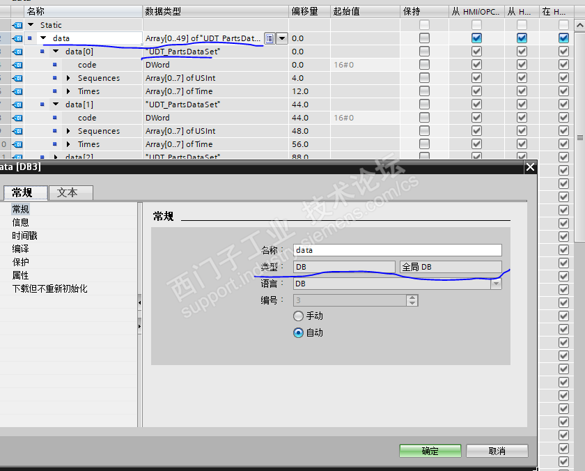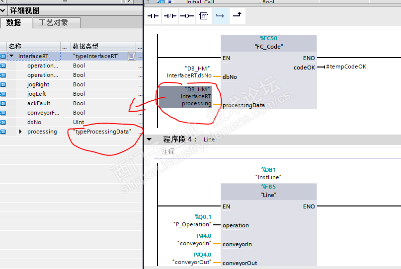 问题2:searchData FC块接口INOUT 声明的形参为UDT_partsdataSet数据类型为什么可以和外部实参"typeProcessingData”兼容?